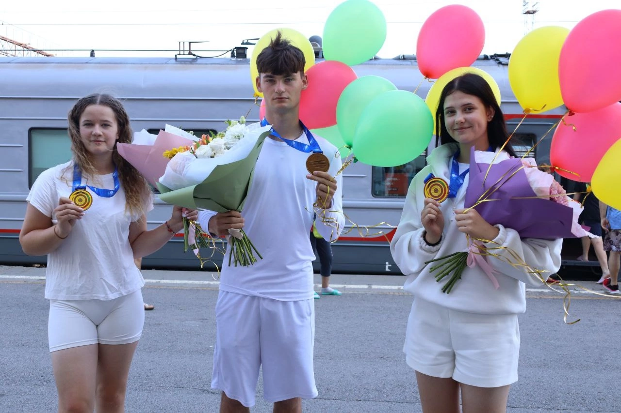 Сегодня на железнодорожном вокзале города с триумфом встретили наших звёздных спортсменов!